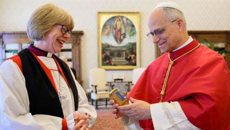Vaj Qhia ntsib Sarah Mullally uas nws yog tus thawj coj lub Koom Txoos Anglican. Nkawd sib tham txog kev sib koom siab thiab kev txhawj xeeb nyob ntiaj teb.
