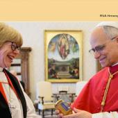 Vaj Qhia Vaj Qhia ntsib Sarah Mullally uas nws yog tus thawj coj lub Koom Txoos Anglican. Nkawd sib tham txog kev sib koom siab thiab kev txhawj xeeb nyob ntiaj teb.